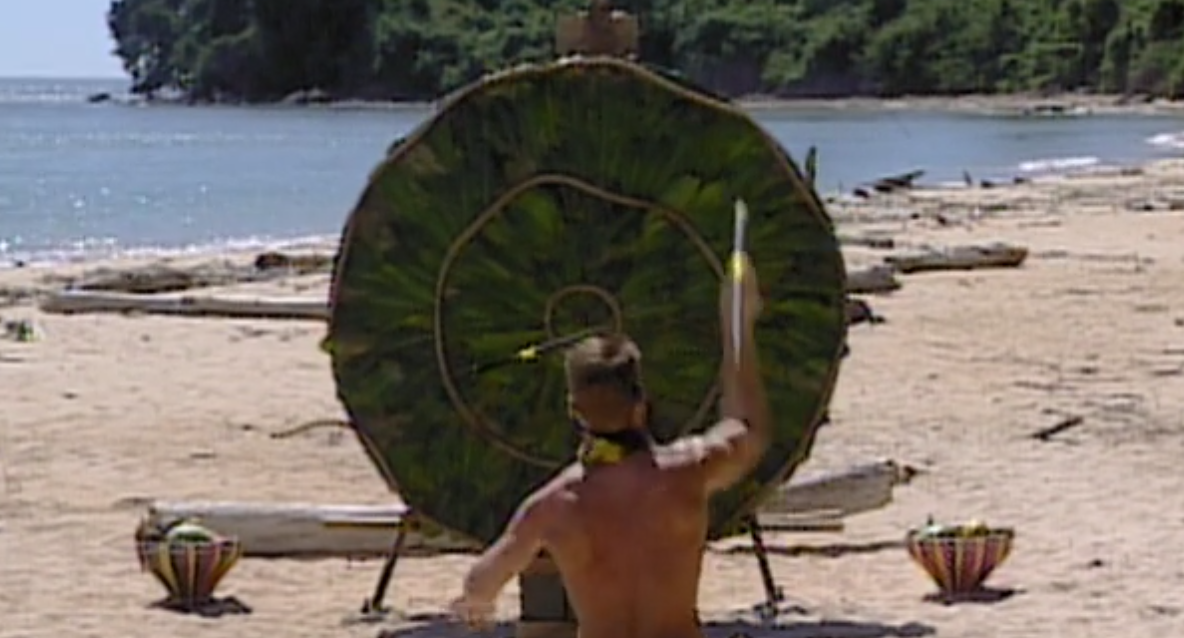 After two rounds, both tribes have acquired a basket of fruit. The challenge all comes down to the spear throwing. The closest to the target gets the fruit and a mystery food source. Joel takes an early lead but Sue evens it up. The music builds the suspense for Joel’s second toss, BULLSEYE! Sue’s last toss isn’t close enough and Pagong gets off their losing streak.