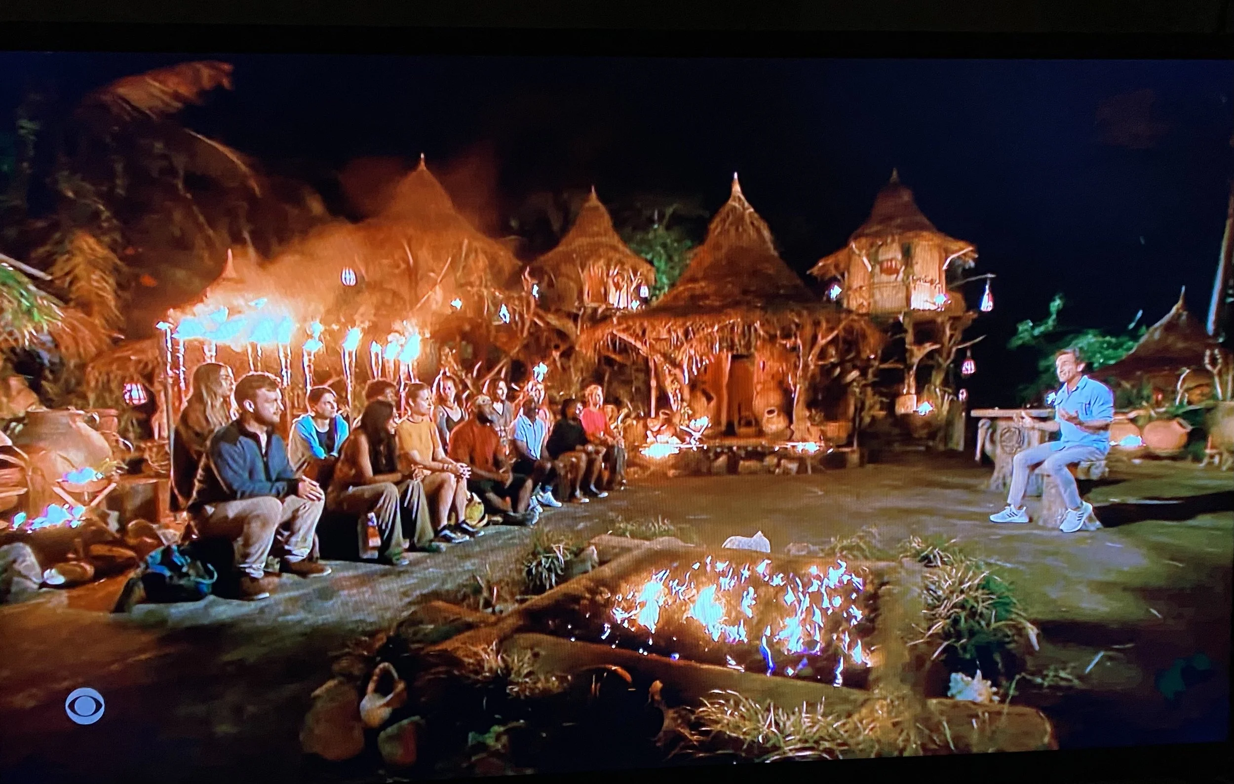 Building on that point is the discovery of a BEWARE ADVANTAGE by….Uncle Bruce!!!! He finds a clue to the idol and loses his vote until he finds it. The idol is hidden under the shelter. Note to self, when I’m on Survivor, dig under the tribal sign, look under the shelter bamboo, and now dig under the shelter. Chances are an idol could easily be in one of those locations. Bruce and his allies are able to run interference and Bruce finds the idol moments before the Fijian boat comes to take them toward the merge.