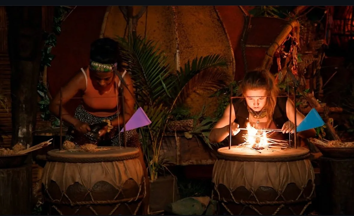 The compelling story continues with Eva staring at the fire making stations, analyzing them, and not paying attention to the Tribal conversation. The reason is Eva’s stuck on the supplies for fire making not being what she was using at camp to practice.