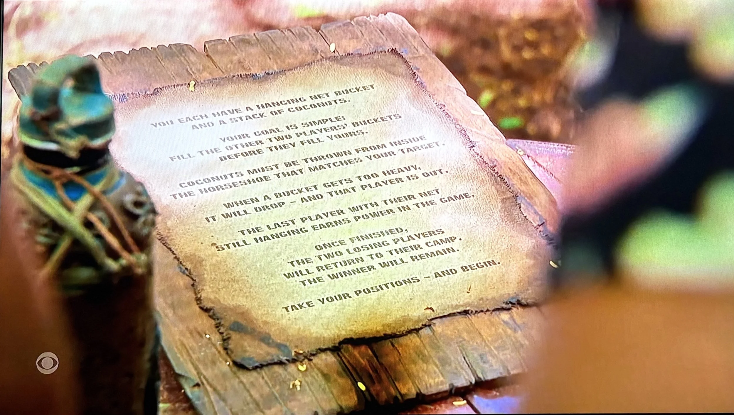 JAWAN’S “TRIBE DISADVANTAGE” - 20lbs of coconuts on each player’s and 10 keys to unlock lock. Jawan is now hated by HINA who isn’t singing their little chant into a challenge anymore.