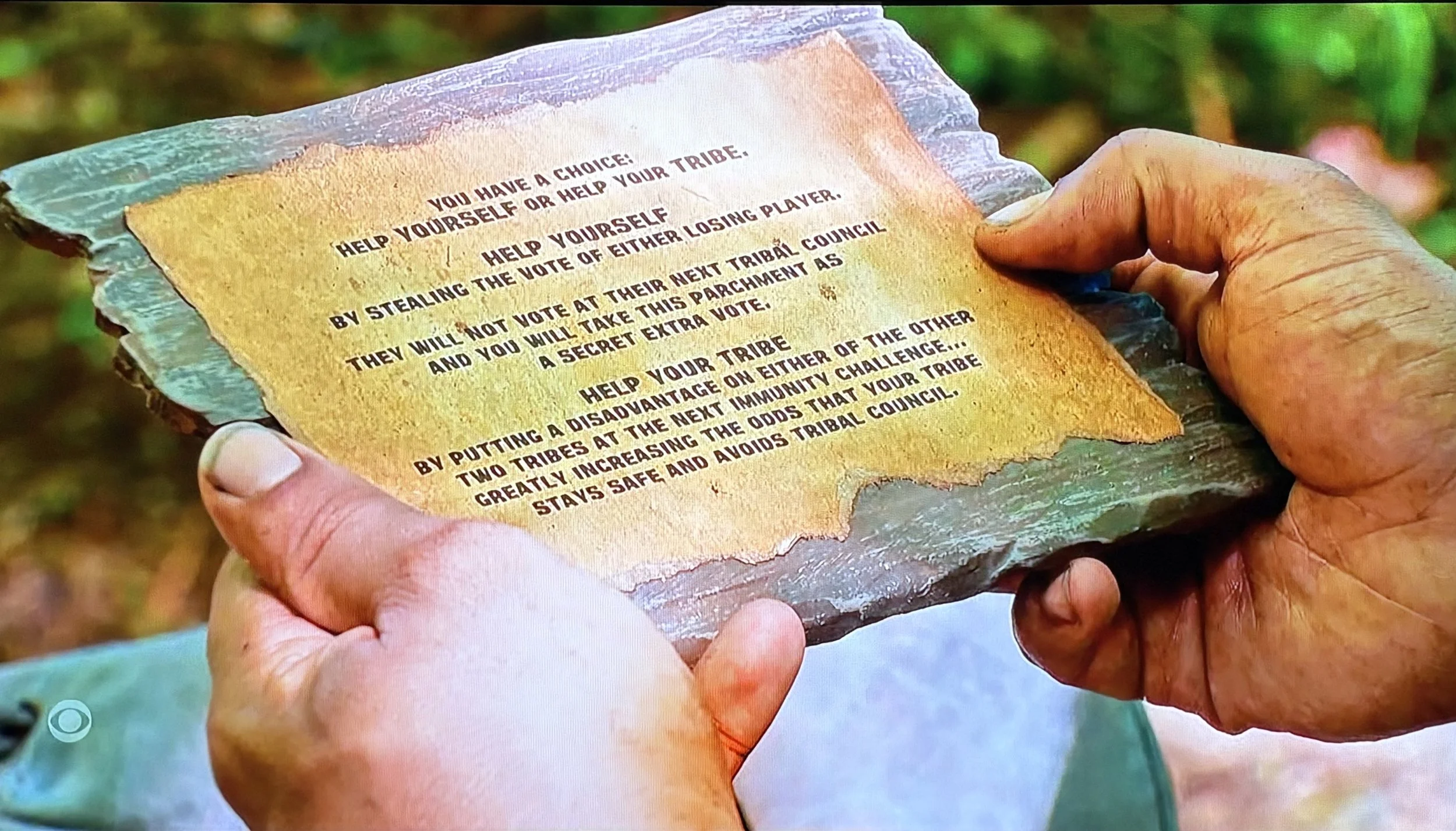 Enter the first Beware Advantage. Alex finds it and has to wait until after KELE loses an Immunity Challenge to find the next clue at the tree mail. Alex also has Jake with him when he finds the Beware Advantage cementing their alliance in the game to this point. I think going through these experiences together on the Survivor bucket list carries a lot of weight.